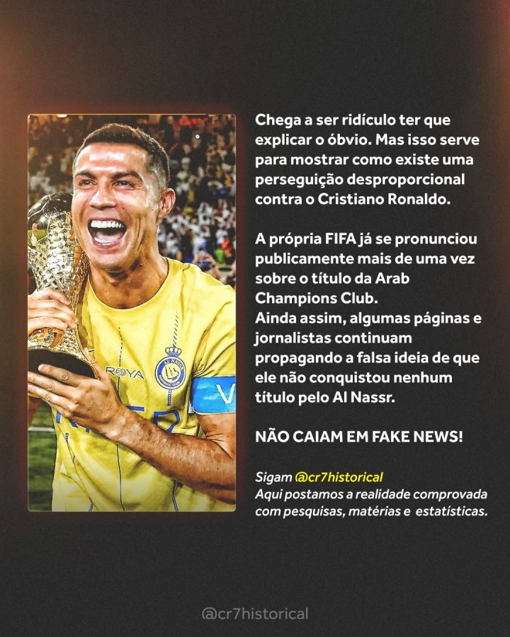 C罗在球迷号@cr7historical发布的骨子下进行了批驳:“袭取是一种良习”,用这么的风景复兴了争议。该球迷号在发布的骨子当中剖释了阿拉冠的考虑情况,暗示该赛事一直王人是国外足联官方认证的赛事,包括后续国外足联发布的考虑骨子当中,王人招供了C罗在该项赛事当中打进的6粒进球,包括国外足联官网发布的著述以及官方发布的年度数据追想王人提到了C罗的6粒进球。