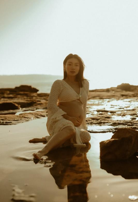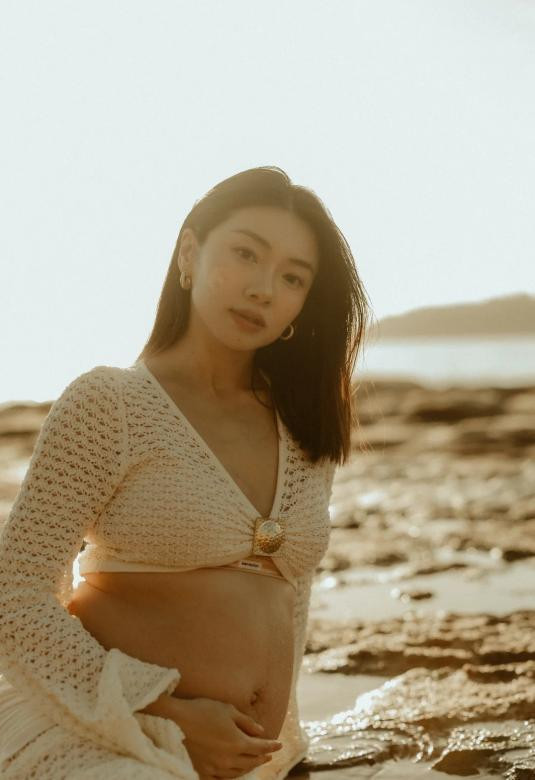 开云体育 程晓玥回上海待产! 在海边拍孕期写照跑起来赶紧, 肚大如筐现象好
