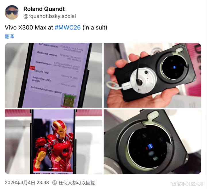 大家围不雅的那台手机,是摆在傍边、没贴任何型号标签的vivo原型机,直到Roland Quandt在Bluesky上甩出实拍图,大家才阐述这台谋划不太一样的vivo,便是据说中的X300 Max。