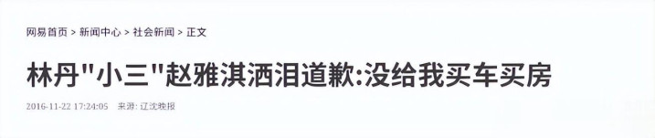 辽宁晚报:林丹“小三”赵雅淇洒泪道歉:没给我买车买房