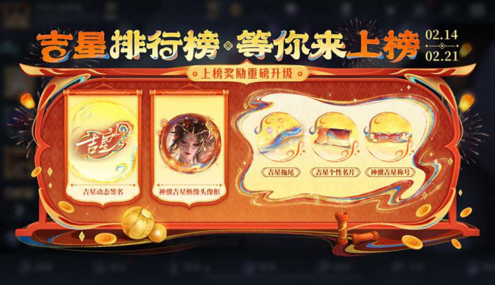 另外还有吉星名次榜作为,这个作为算是土豪专属作为了。官方每年出这样一个作为,让土豪玩家进行打榜。