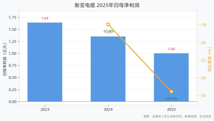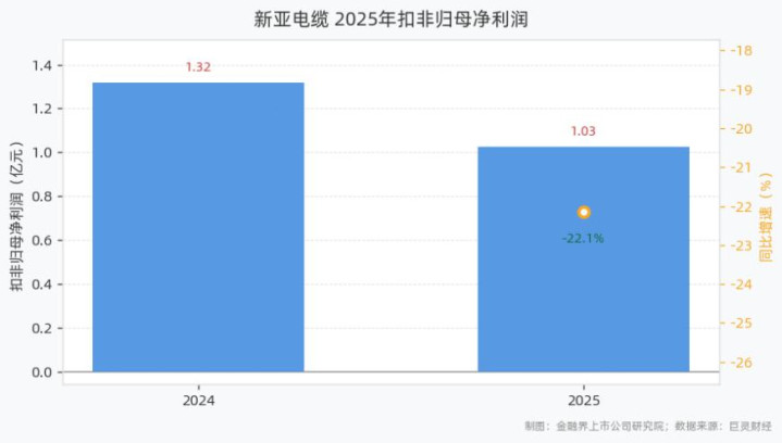 4月20日,新亚电缆发布2025年年报。论说显现,2025年公司竣事生意总收入29.47亿元,同比增长4.00%;竣事归母净利润1.00亿元,同比下滑25.57%;竣事扣非归母净利润1.03亿元,同比下滑22.15%;基本每股收益为0.26元,加权平均ROE为7.93%;探讨行径净现款流为-2.43亿元,同比下滑460.21%。